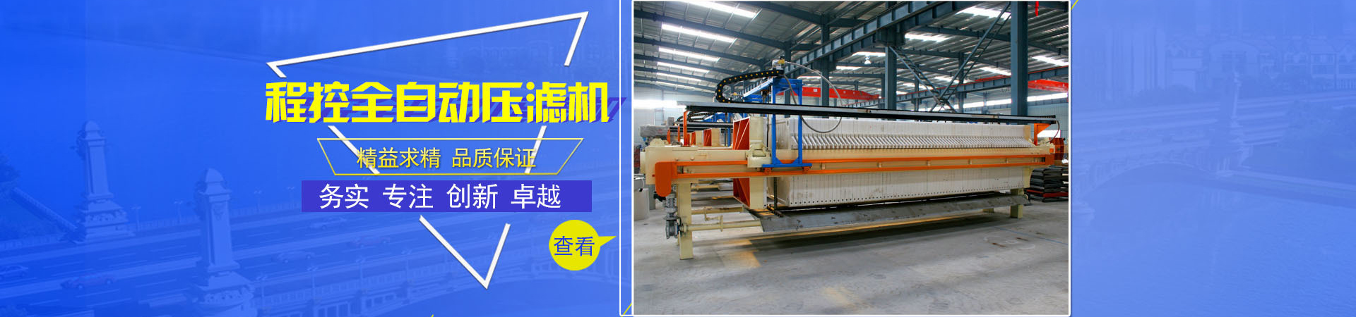 州市巍峨压滤机有限公司是国内生产分设备的专业厂家位于州市古城工业园区。我公司主要产品有:液压压紧压o机、自动压滤机、隔膜压滤机、机械式压o机、板框压滤机式压o机,压榨带式qo机、橡胶真I带式过滤机、压滤机专用滤板pd板框、压滤机专用c振动筛{?q泛应用于石沏V造纸、淀(wn)_、冶金、环保及污水处理{行?...